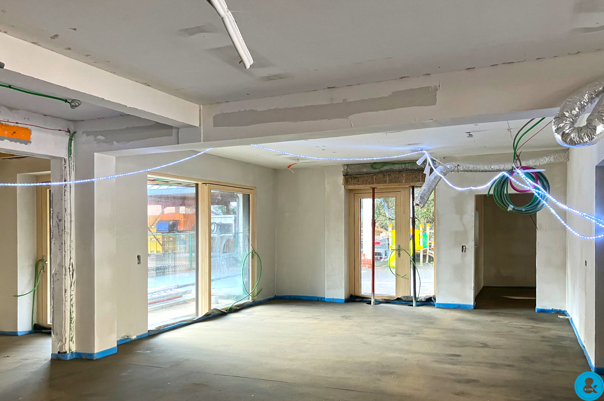 La crèche est aménagée sur l'emprise des actuels: la halte-garderie, magasin de seconde main et couloir. Ces derniers sont évidés de manière à réorganiser la crèche de la meilleure manière.