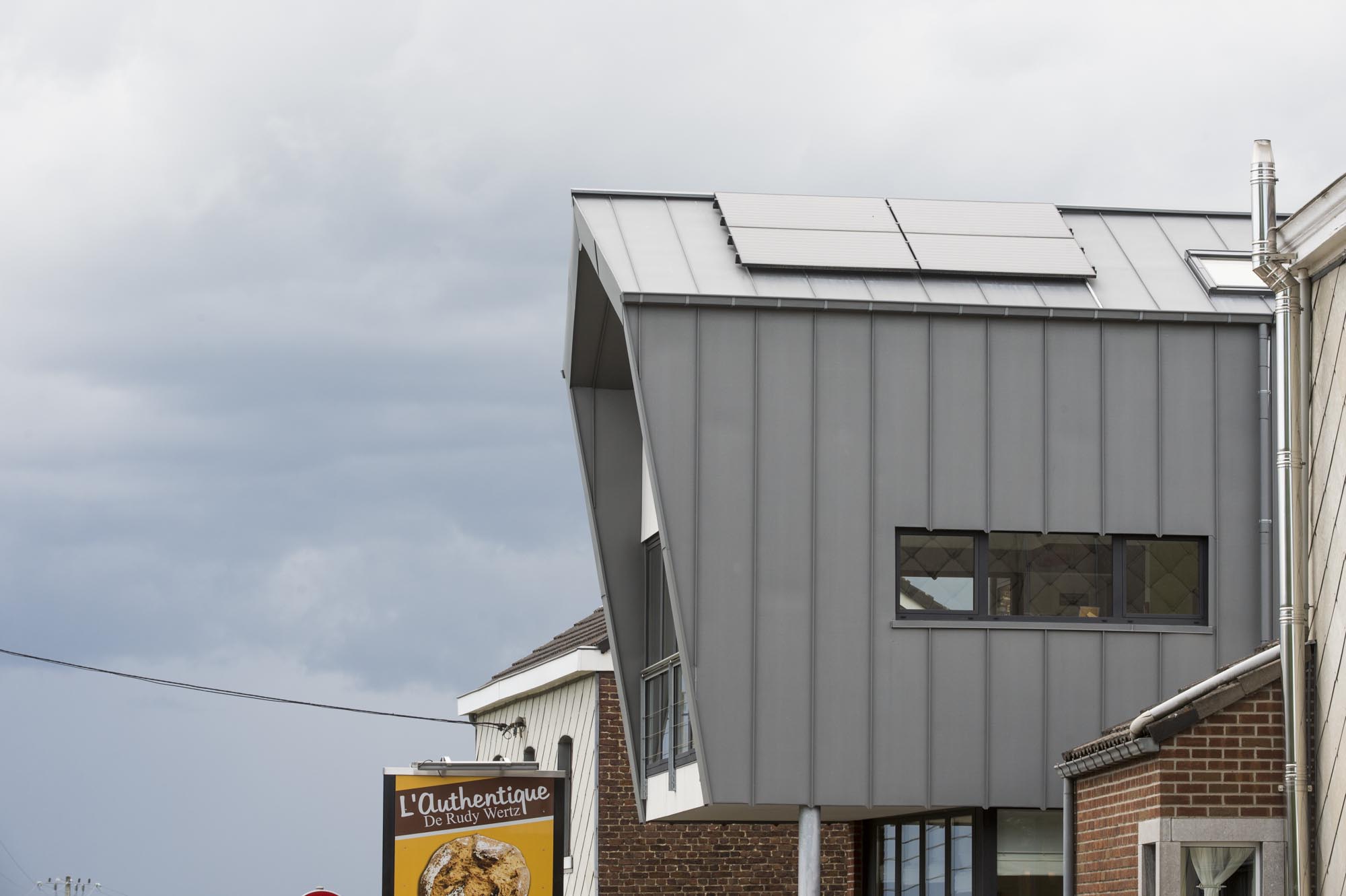 Extension d’un atelier de boulangerie, construction d’un point de vente et d’un salon de dégustation. A l’étage une salle de séminaire pouvant être transformée en studio complètement indépendant a été prévue afin d’offrir encore plus de polyvalence au développement de la boulangerie, située en bordure d’un zoning industriel.